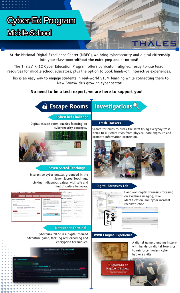 At the National Digital Excellence Center (NDEC), cybersecurity and digital citizenship are brought into your classroom without the extra prep and at no cost!