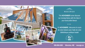 All this month, you can visit your public library to get your pass and gain a one-time entrance to the museum on any day it is open from November 1 – 30, 2025. Resurgo Place is located in Moncton.